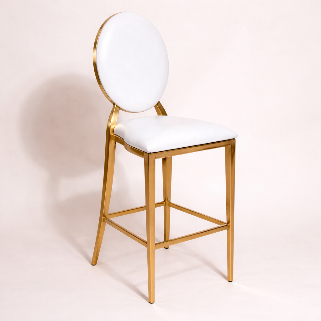 Add instant luxury to any space with the brand-new Gold Rim Dior Barstool. Featuring a sleek gold trim and a premium white faux leather seat, this stylish stool brings elegance and glamour to venues. Perfect for event spaces, and VIP settings, it pairs beautifully with our Gold Rim Luxury Dior Chairs and Gold Malone Chairs to create a stunning coordinated look.